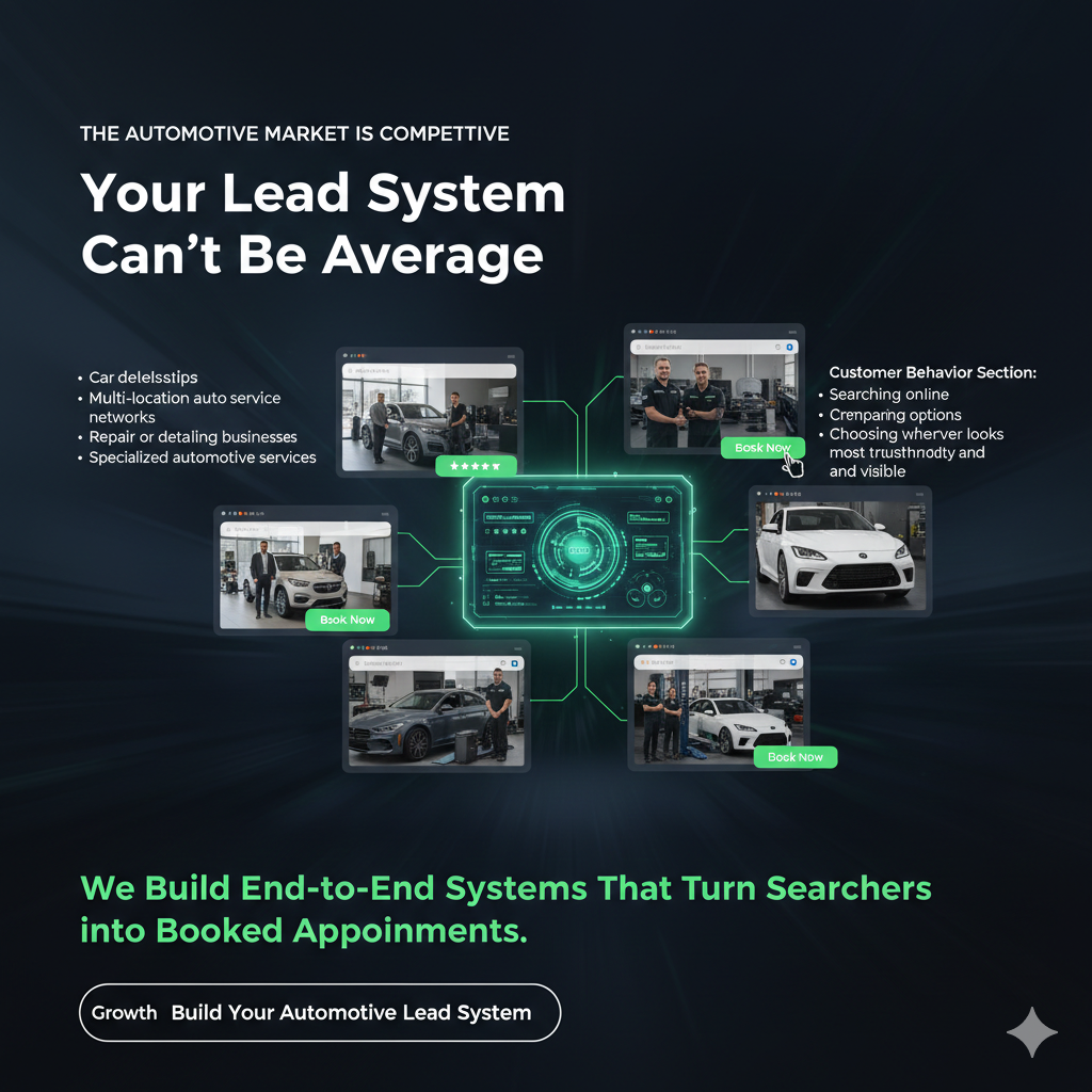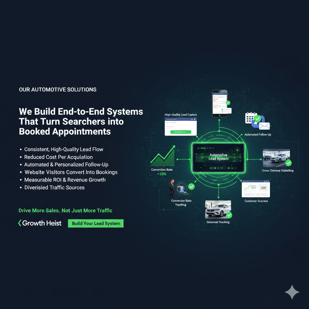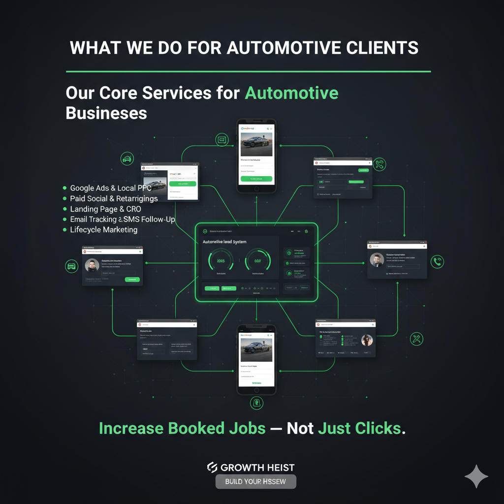 We help automotive businesses generate consistent, high-quality leads and service appointments using full-funnel growth systems across paid media, conversion optimization, and lifecycle marketing.