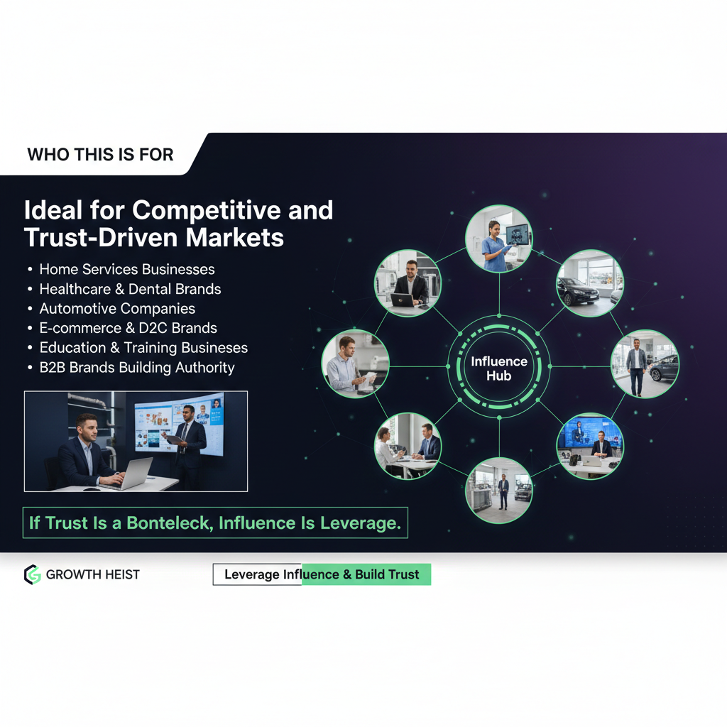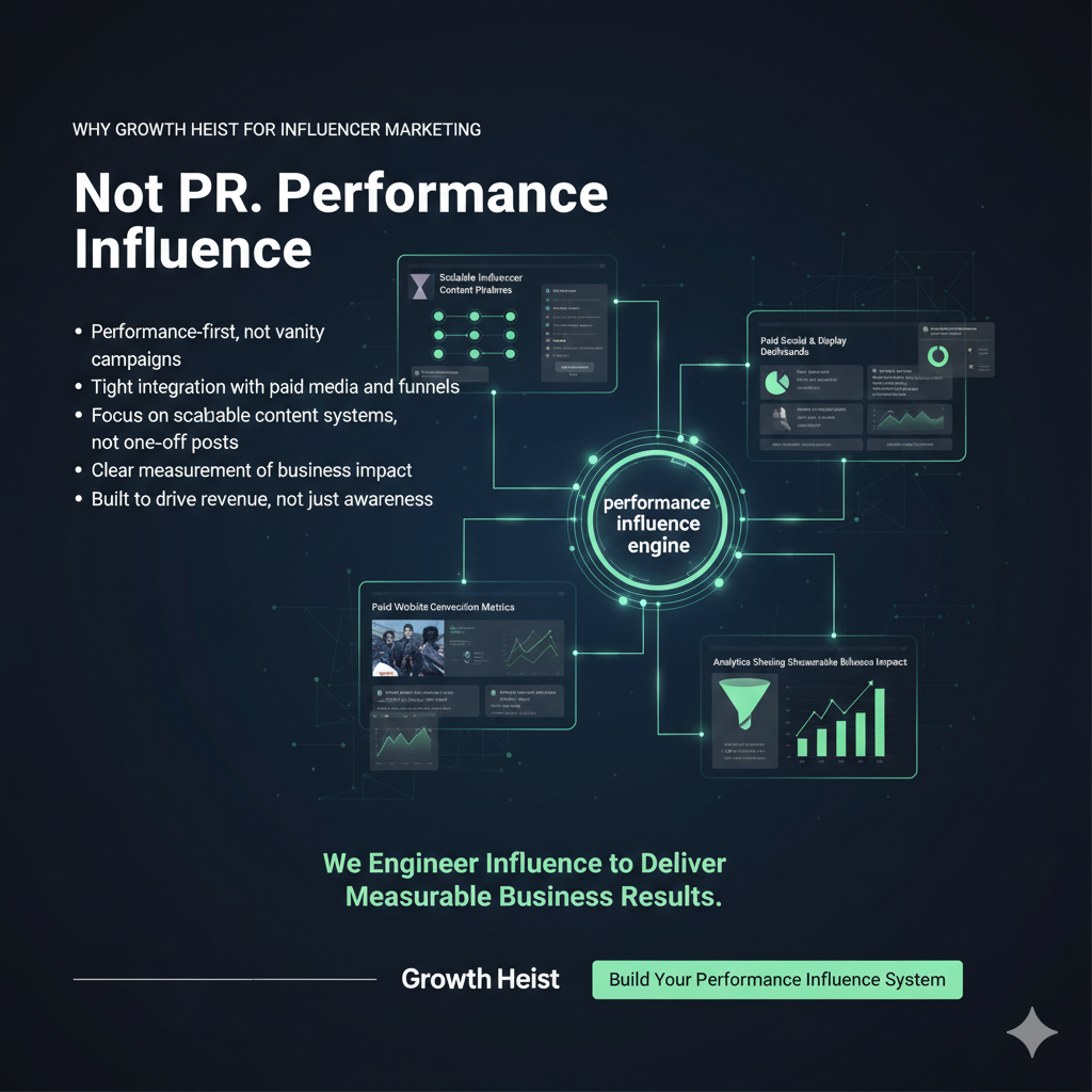 At Growth Heist, we treat influencer marketing as a performance and demand generation channel, not a branding experiment.